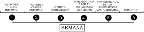 • Sem 5. De acuerdo a nuestra Posición Estratégica (ataque, defensa o desposeimiento) y conociendo de antemano las estrategias a implantar, vamos a encontrar con la ayuda otra matriz llamada (DEA) las estrategias que más se adapten a nuestra posición.