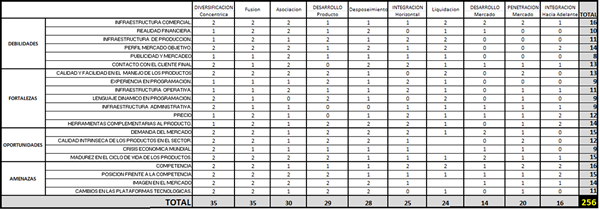 Una vez se tengan las estrategias adecuadas de acuerdo a su posición, se procede a completar el cuadro DOFA donde se puede especificar el paso a paso de las Estrategias seleccionadas y compararlas con las Debilidades, Oportunidades, Fortalezas y Amenazas de su negocio.